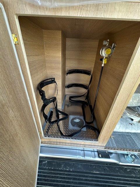 Com um frigotifico de compressor a 12v e com o aquecimento Truma Combi D a diesel, esta autocaravana só precisa de usar gas para o fogão, tornando-se super prática e autonoma.