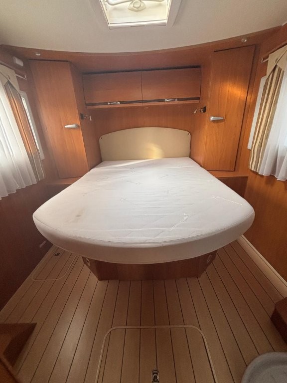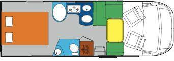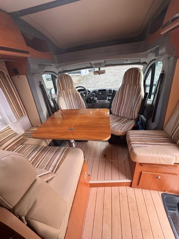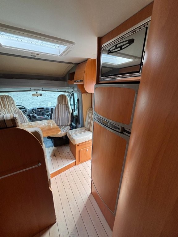 Cama central atrás, cozinha com muitas portas e armários, casa de banho dual space com duche cabine de duche separado, sala com 2 sofás, 2 roupeiros. O estrado da cama levanta-se para acesso pelo interior, existem tb uma porta exterior de acesso a esta mesma cama de grandes dimensões. Esta cama tem um mecanismo que permite levantar e baixar o estrado da cama, permirindo assim que se transporte uma mota ( por exemplo).. Cozinha em L com muitas portas e gavetas.